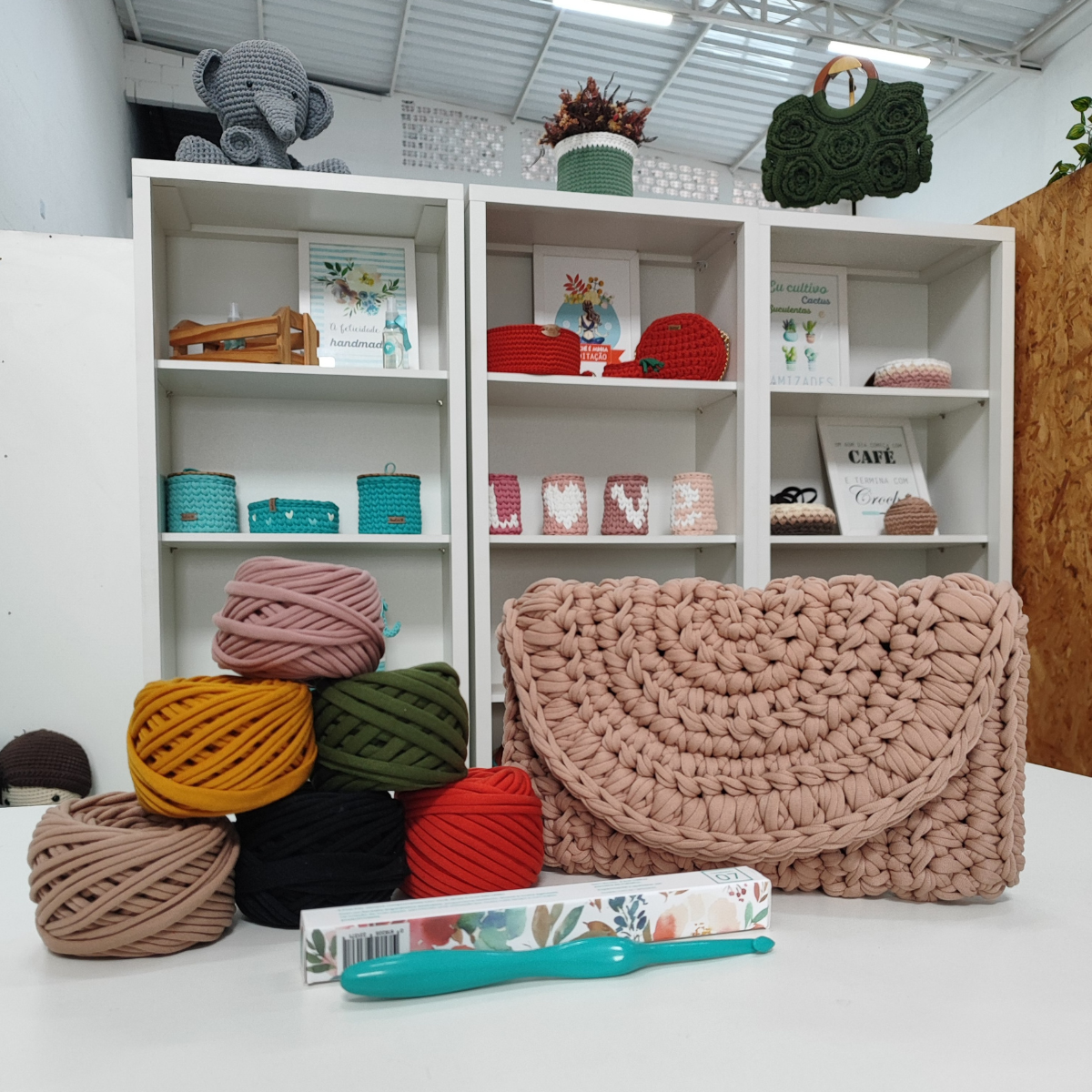 Este kit exclusivo inclui o principal material para confeccionar sua clutch e o mais importante, um passo a passo em vídeo (via QR Code) super detalhado, ideal para aprender a técnica do crochê com Fio de Malha Premium.